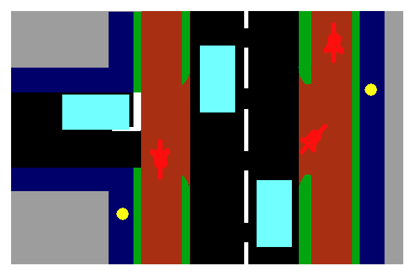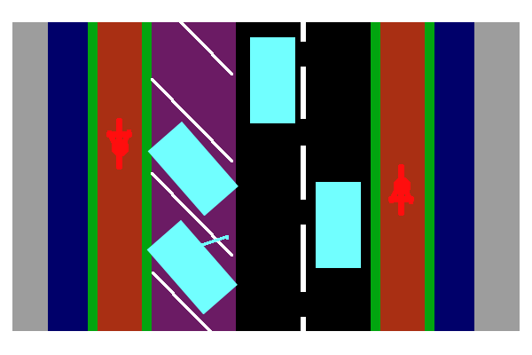 | Smaller side road with centre line removed and cycle lanes marked | ![]() |