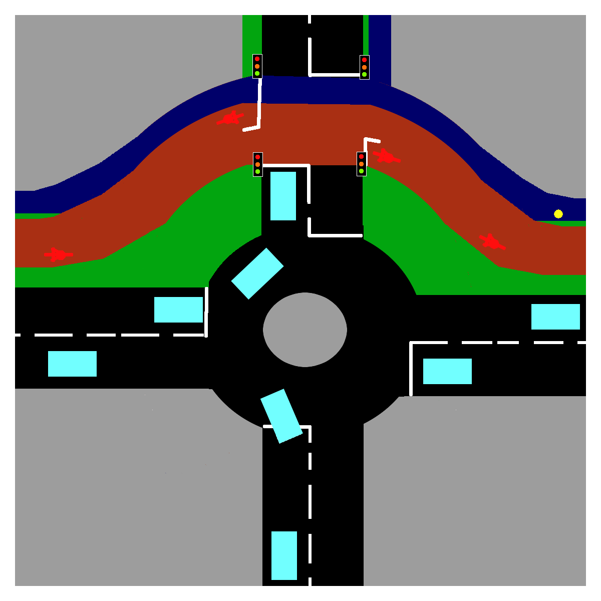 Roundabout with 2-way cycle lane crossing it. (loosely based on A10 roundabout with Witchford Road)